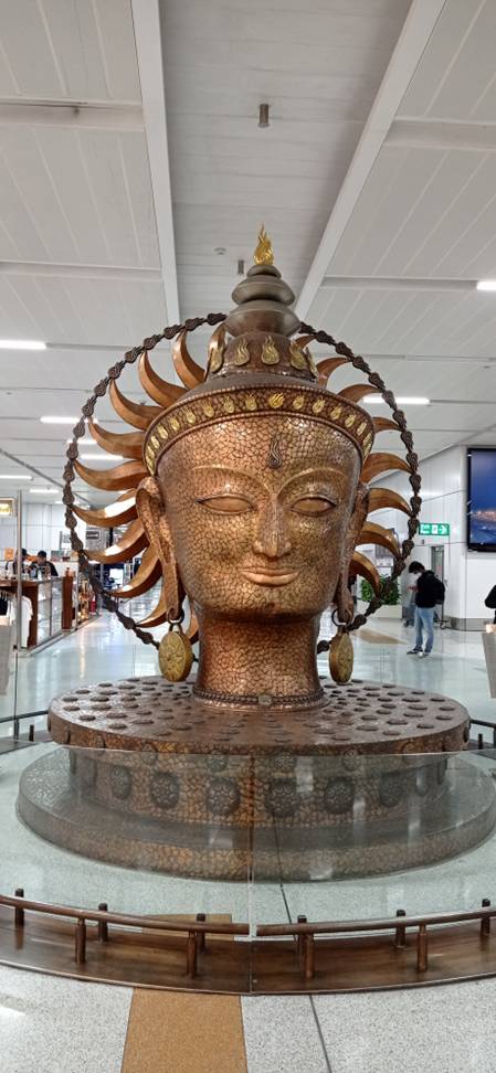 Проход внутрь исключительно босиком по раскаленным каменным ступеням. Внутри статуи находится музей-пещера, посвящённый индийскому эпосу.