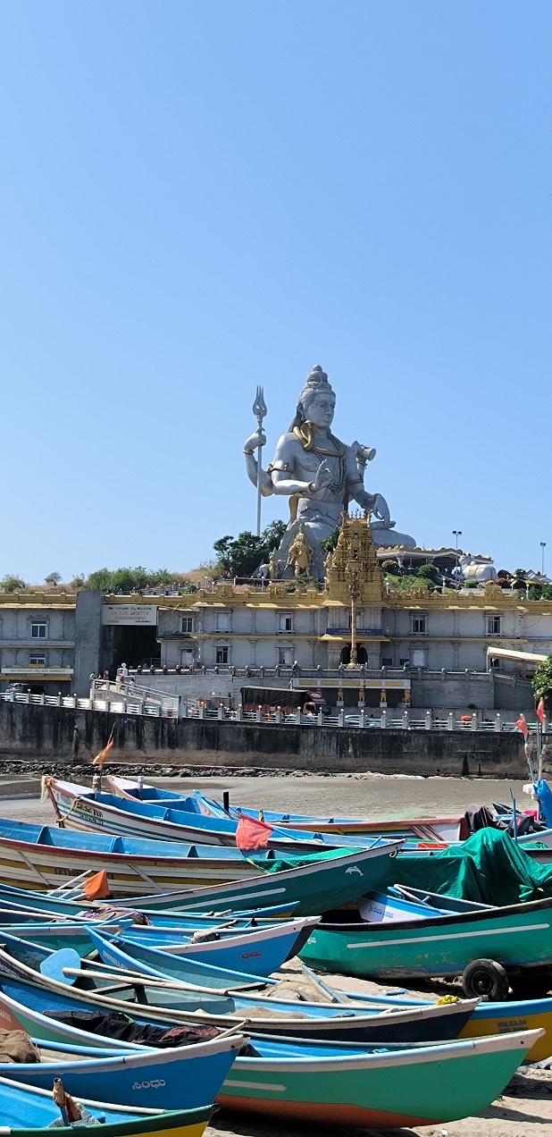В Мурдешваре вы точно не заблудитесь. Статуя четырехрукого Шивы будет смотреть на вас со всех сторон. Сказать, что статуя большая, ничего не сказать. Её размеры поражают ещё задолго до того, как ты приближаешься к ней. Стоя внизу под этой мощью, ощущаешь себя мелкой букашкой. Высота этого гигантского изваяния 37 метров.