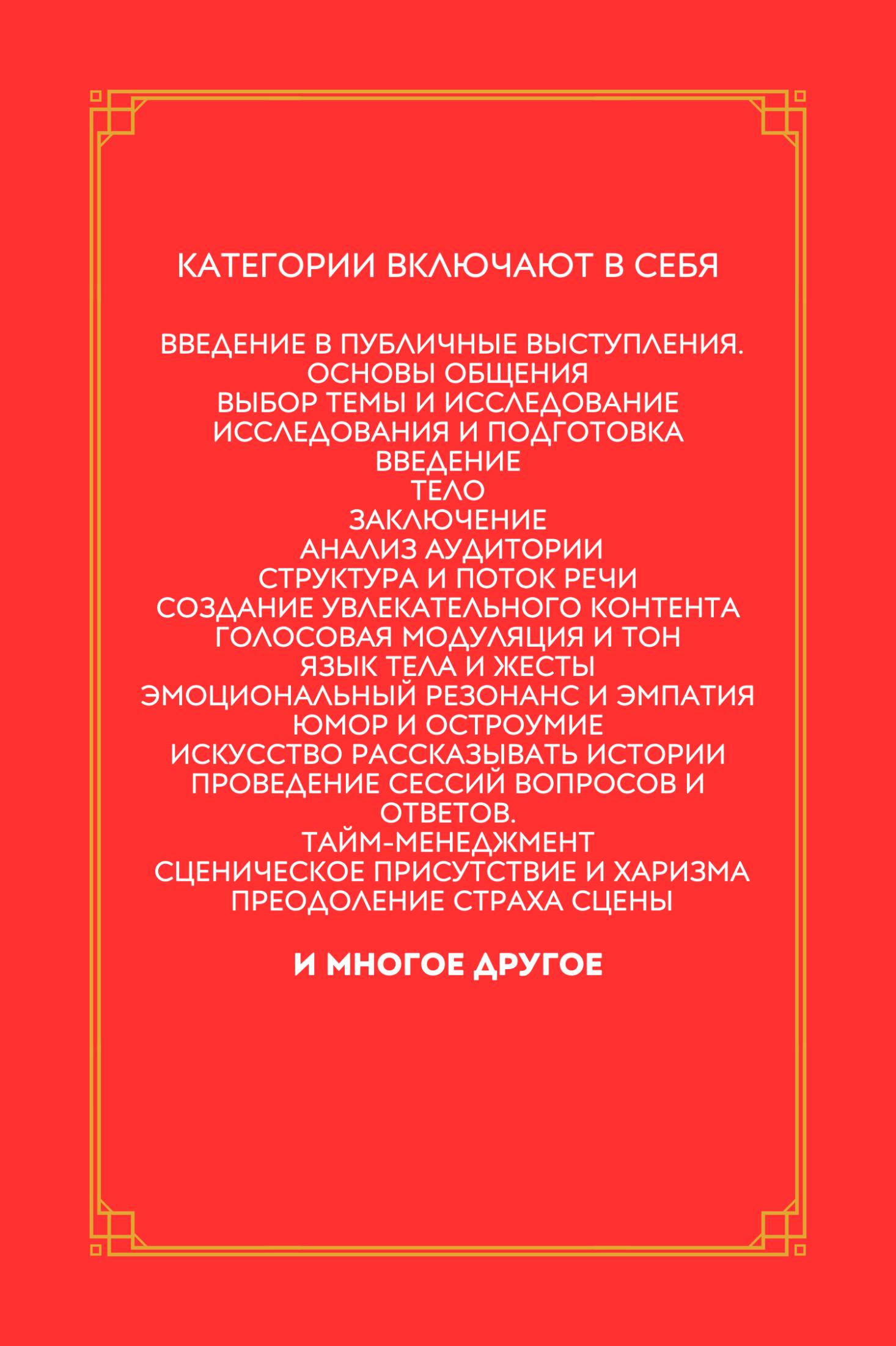 Наша книга – это не просто сборник теоретических знаний о публичных выступлениях, а целый формат обучения, который приглашает вас к практическому применению навыков и стратегий для успешных выступлений перед аудиторией. Мы стремимся создать доступный формат, который не обременяет вас финансово, но при этом обладает огромными возможностями для углубленного погружения в мир публичных выступлений и овладения необходимыми навыками.