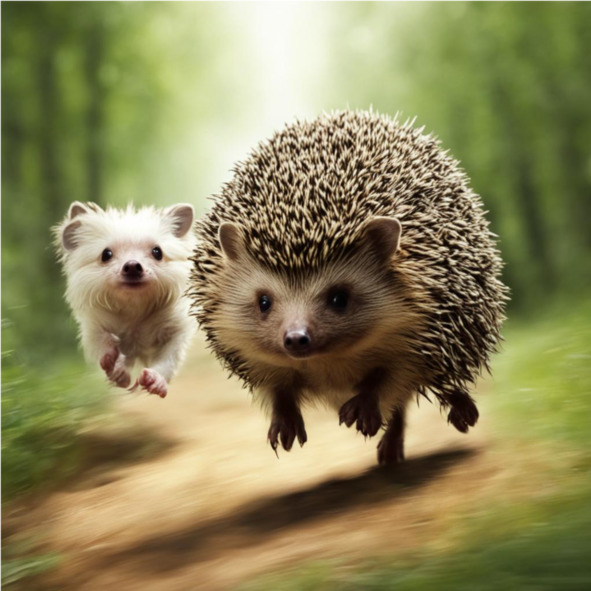 Однажды они решили устроить соревнование – кто быстрее пробежит по лесу. Кнопка была очень быстрой и ловкой, а Колючка – быстрым и юрким.