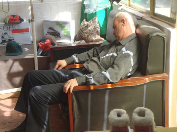 Наш новый магазин, пользовался большой популярностью у местного контингента. И такое было к большому нашему сожалению. К нам захаживали, не чтобы что-то купить, а могли просто прогуливаться по нему и говорить долго по телефону. Люди очень любили с нами болтать, отнимая при этом наше не резиновое время. Некоторые наши знакомые из торгового люда, порой заходили просто отдохнуть от трудовых будней. Однажды один из них даже улёгся спать прямо на нашем пошивочном столе. А местный завхоз делал это постоянно. Он с усердием храпел в кресле у самого входа. В общем, магазин был для них некой отдушиной.