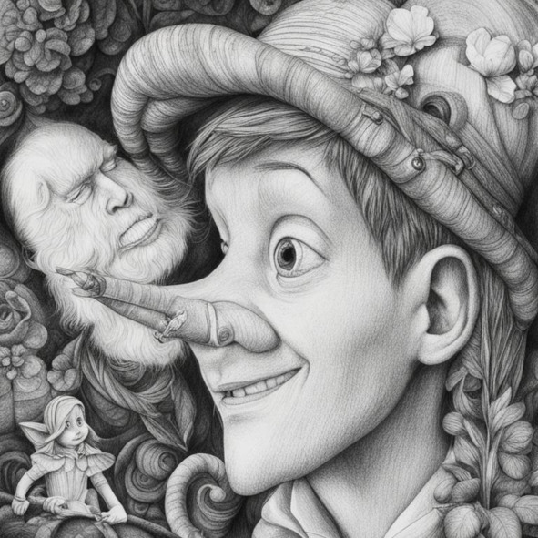 Папа Карло взял полено и начал строгать. Он работал долго и напряжённо. Наконец, закончив, мастер внимательно вгляделся в творение рук своих. Перед ним лежала деревянная кукла – симпатичный мальчуган с длинным острым носом. Внезапно кукла подняла голову и подмигнула ему.