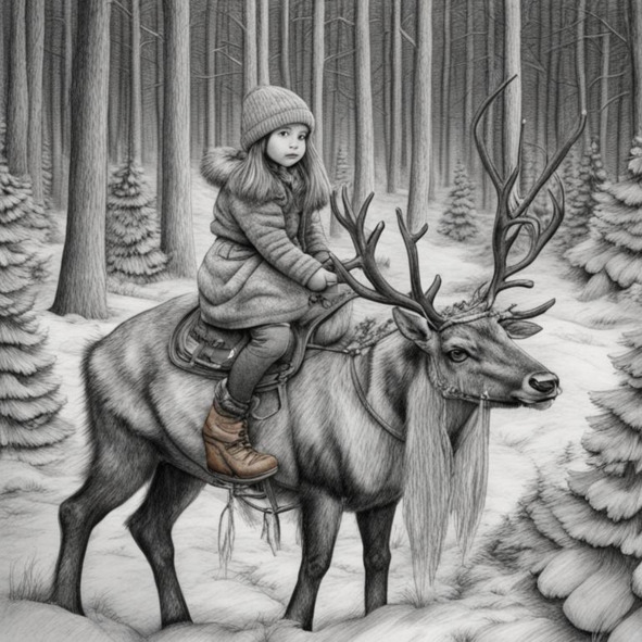 Как-то раз на очередной экскурсии по зимнему лесу девочка отстала от ребят и углубилась в лесную чащу. Она знала, что там должен жить величественный Северный Олень, который один раз помог девочке Герде найти своего друга Кая.