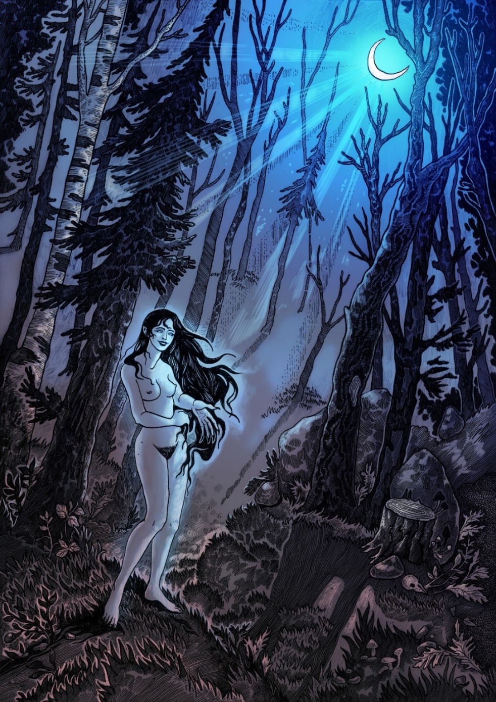 Женщина, сотканная паутиной Луны, каждый раз приходит в ночи через дверь желаний моих. Сев на меня, она смотрит в глаза мои – и не в силах я отвести взгляд. Ведь в глазах ее плещутся миры, что не видел я прежде, не знал. Слезы стекают по щекам моим, пока она меня иссушает. Меня убивая, песни она мне напевает – песни о Другой Стороне.