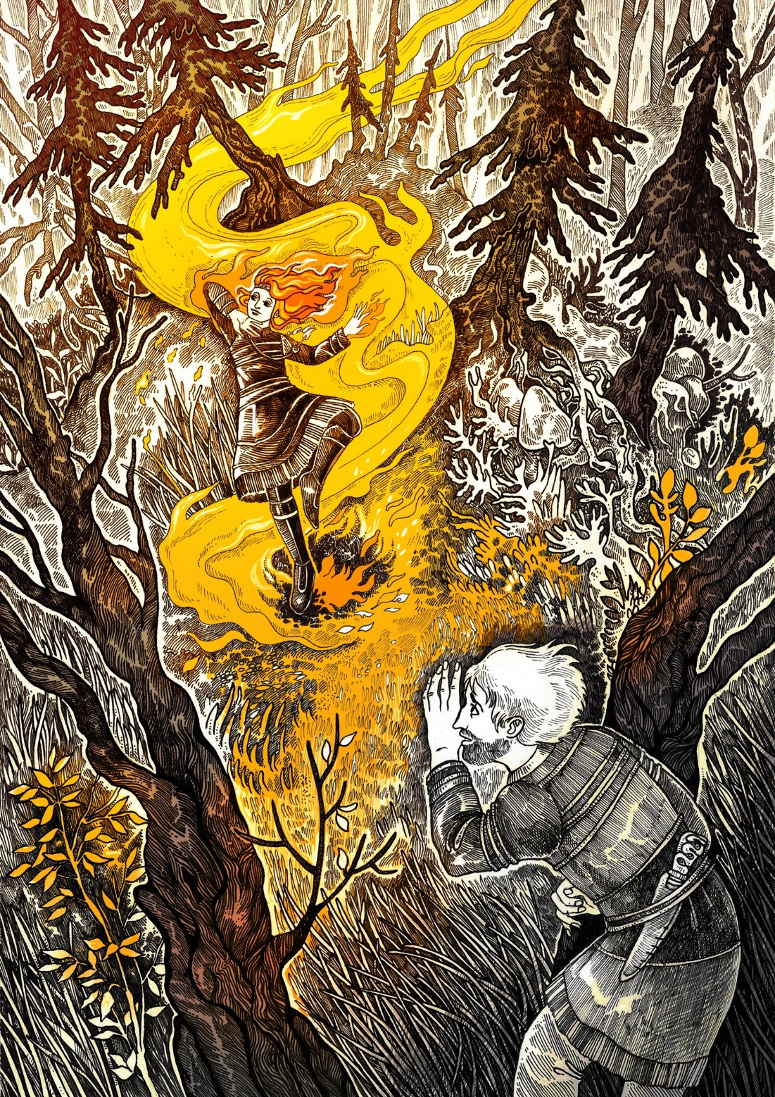 Но та лишь рассмеялась и принялась кружиться еще быстрее. Огонь следовал за ней, вспыхивая все ярче и ярче, деревья по краям Круга уже горели вовсю, и языки пламени на их верхушках жадно тянулись к небу.