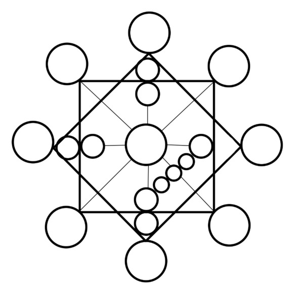 Сначала мы рисуем обычный квадрат (родовой), а потом уже ромбообразный квадрат (личный). И в итоге получается у нас октограмма.