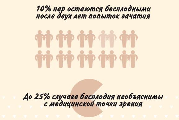 Согласно исследованиям института Inserm[8], 10 % пар остаются бесплодными после двух лет попыток зачатия и до 25 % случаев бесплодия остаются необъяснимыми с медицинской точки зрения.