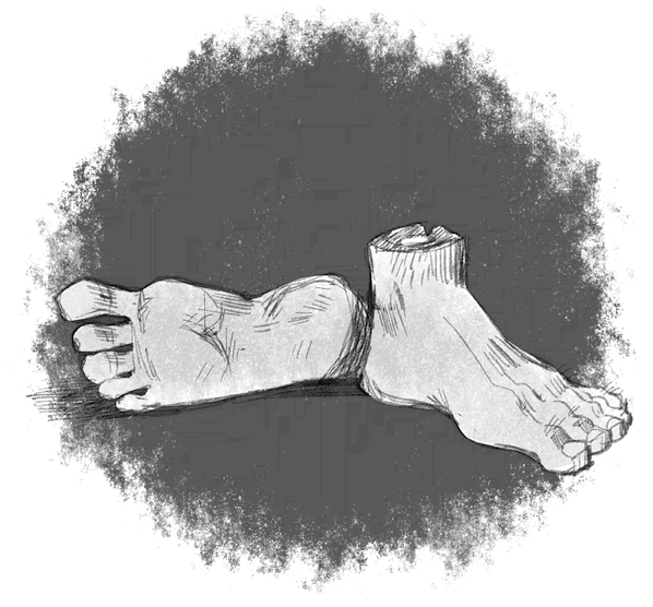 Только она это сказала, как из дымохода выкатились две гнилые стопы. От ужаса бабуля вытаращила глаза.