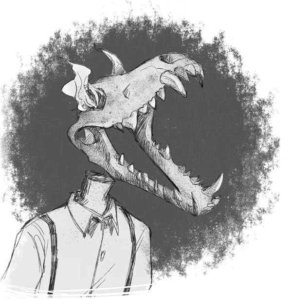 Он подошел и посмотрел существу в лицо. У того был череп, как у скелета, и яркие, глубоко посаженные глаза.
