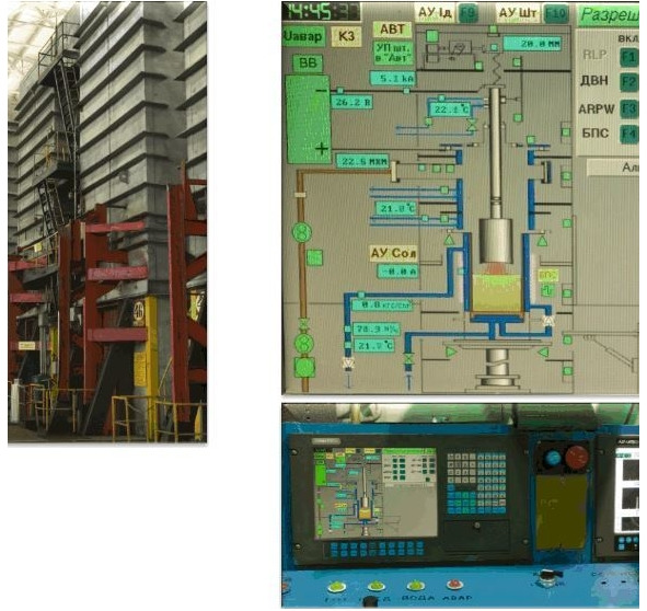 – оперативный контроль и отображение текущих значений параметров техпроцесса, сигналов и состояния технологического оборудования в виде мнемосхемы на мониторе ЭВМ;