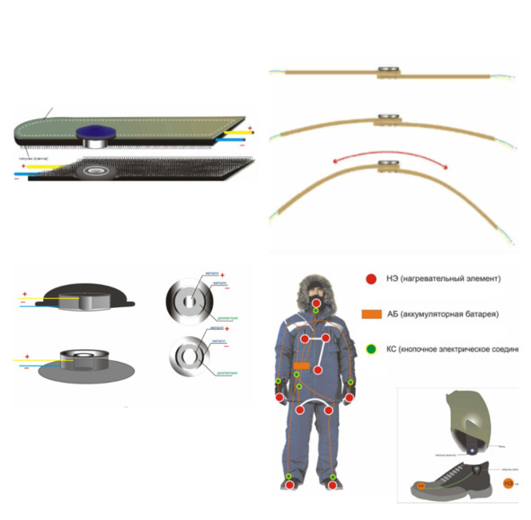 Автором разработано электро разъемное кнопочное соединение, обеспечивающее пропускание электрического тока в швейных изделиях, например, одежда с обогревом/охлаждением, или другие товары, в которых предусмотрено электрическое соединение частей.
