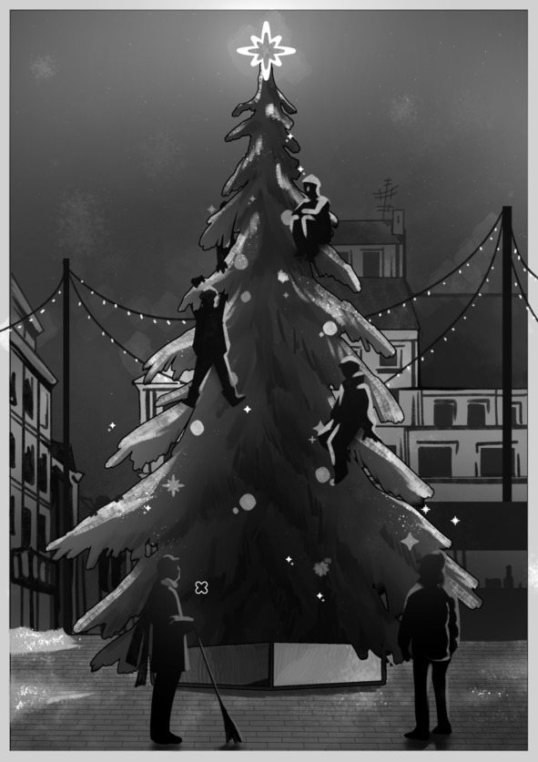 Но недавно всё изменилось. Сначала в размеренную жизнь горожан вмешался карантин, по причине эпидемии какой-то странной болезни. Нет, ель тогда наряжали игрушками и гирляндами, но ярмарку отменили, и всё праздничное время дерево простояло в одиночестве, без привычных хороводов и весёлого гама вокруг. А потом ель и вовсе перестали наряжать, хотя карантин давно отменили. В рождественскую ночь на площади больше не собирались люди, лотки с подарками пропали, и лишь иногда к ели украдкой подбегали местные дети и тихо стояли рядом с ней.