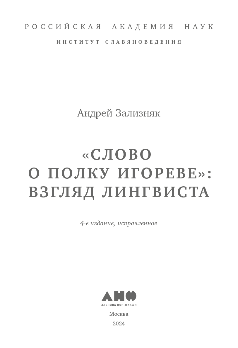 В настоящем издании книга состоит из пяти отдельных статей, посвященных одной общей теме – лингвистической стороне проблемы подлинности или поддельности «Слова о полку Игореве». Из этих пяти статей последняя представляет собой добавление к тексту первого издания.