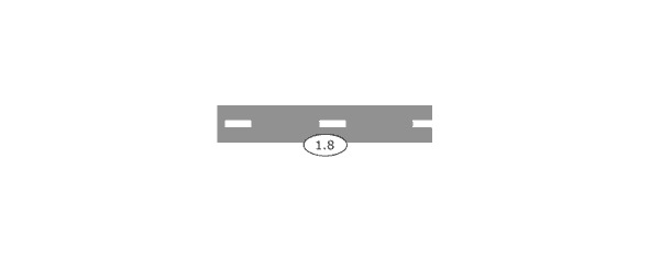 1.8 (широкая прерывистая линия) – обозначает границу между полосой разгона или торможения и основной полосой проезжей части. Пересекать разрешается с любой стороны.