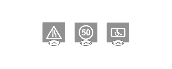 1.24.1—1.24.3 – дублирует соответствующие дорожные знаки и применяется совместно с ними.