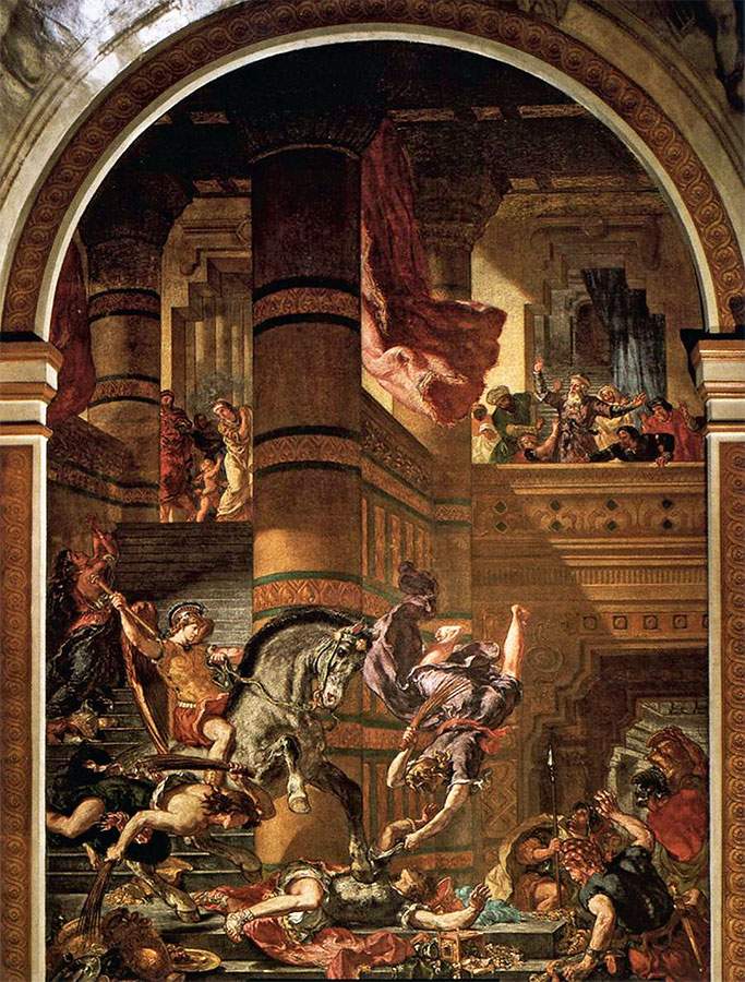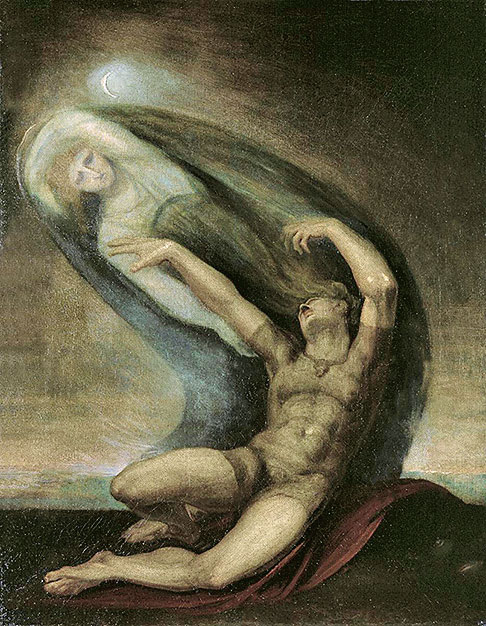 Фюссли учился рисунку, перерисовывая фрески Микеланджело от руки. Влияние титана Возрождения проявилось в массивных мускулистых фигурах и необычных, экзальтированных позах, чуждых классицизму.