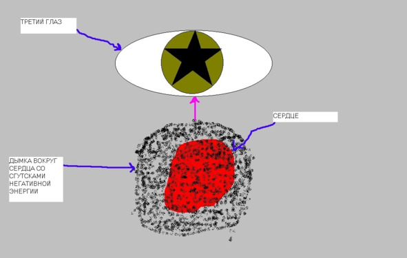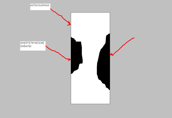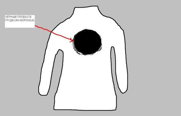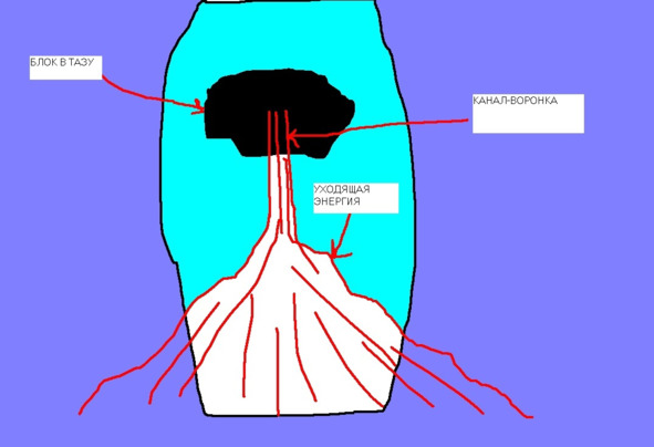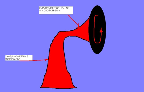 На рис. 6 ты увидишь свои нарушения. В области груди имеется чёрная воронка. Она связана с Зазеркальем с помощью чёрного канала (рис. 7). Поэтому вся твоя положительная ян-энергия не копится, а уходит вниз. Что это означает?