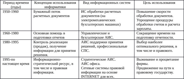 Как видно из таблицы 1.1., за прошедшие полвека АИС прошли достаточно сложный и тернистый путь. Причем, правовые системы и комплексы (СПС) по настоящему заявили о себе только в последние 8 – 9 лет, когда впервые появились целые семейства СПС: «Гарант», «Консультант плюс» и «Кодекс».