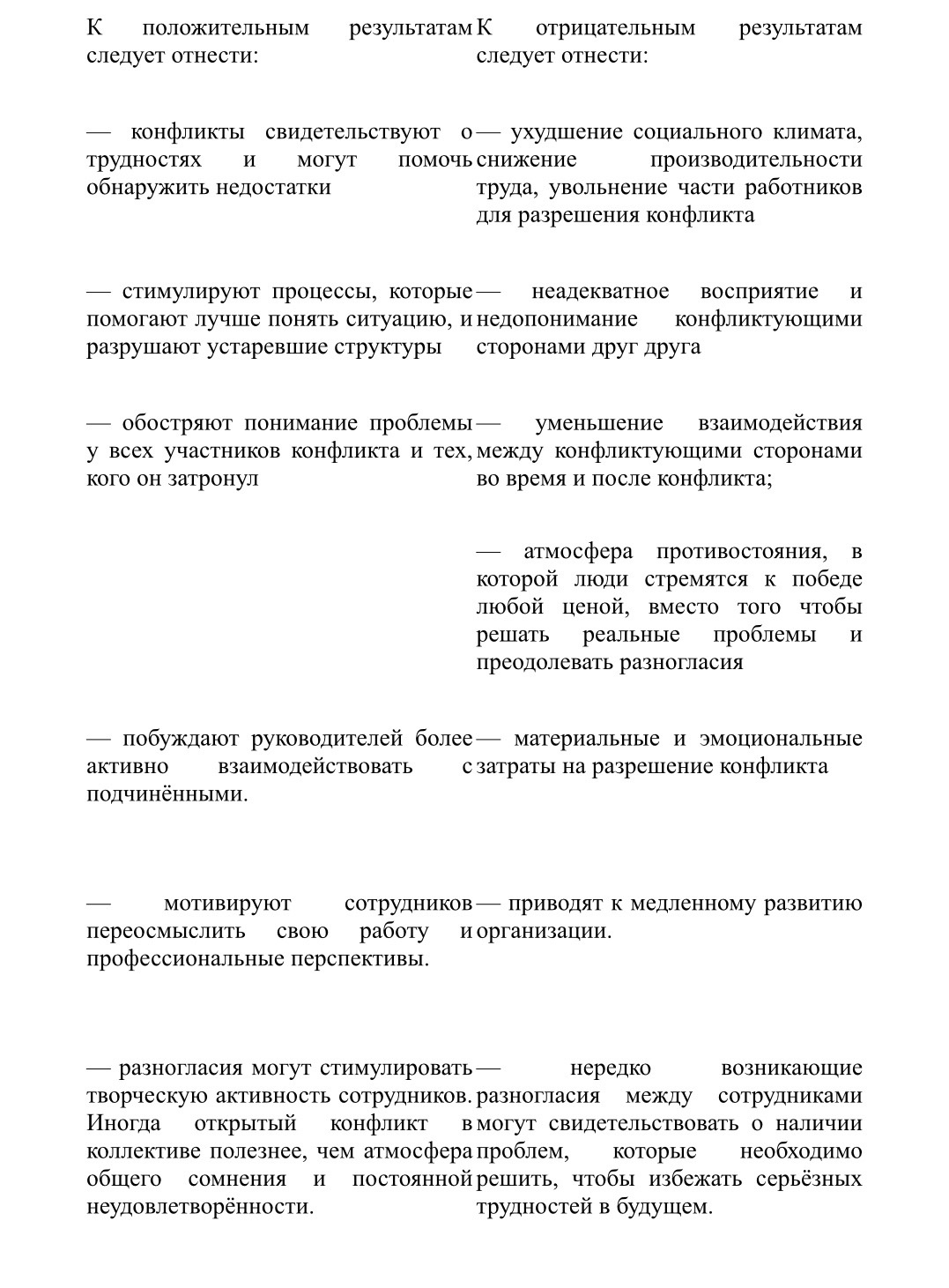 Конфликты играют важную роль в управлении персоналом не только из-за связанных с ними временных затрат, но и из-за значимости их результатов для организации. Эти результаты могут быть как положительными, так и отрицательными, поэтому для диагностики и управления конфликтом важно понимать его специфику.