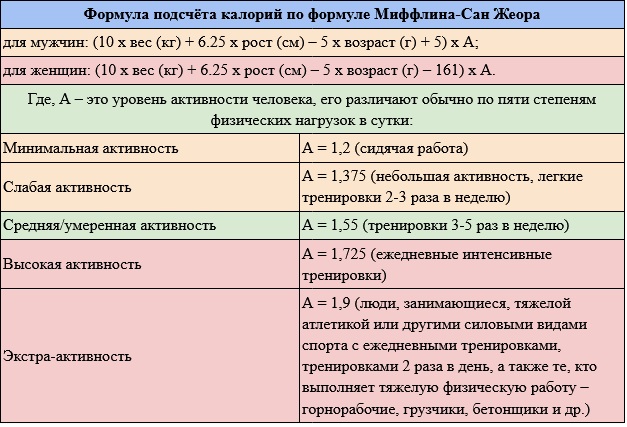 Помимо БЖУ существует несколько формул расчета нормы калорий. Наиболее популярные – это формула Харриса-Бенедикта и Миффлина Сан-Жеора. Доработанный вариант формулы Миффлина-Сан Жеора на сегодняшний день является самой точной формулой расчета.