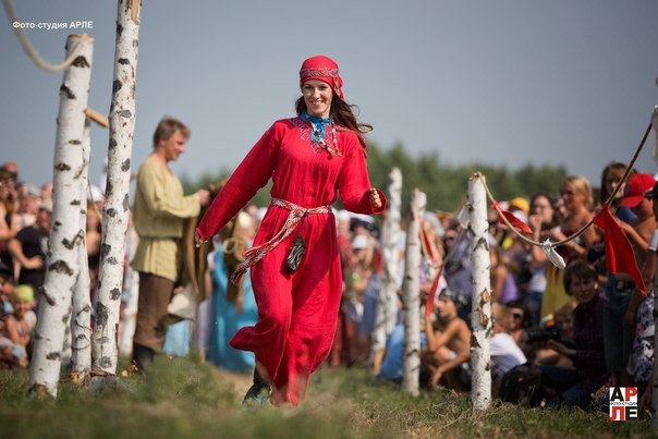 И вот настал торжественный заключительный день фестиваля, на нашу огромную поляну съехались порядка пяти тысяч человек – зрителей развлекательной части. Реконструкторы скакали верхом на конях, продавали кованные кольца, браслеты и фибулы, стилизованные под старину. И вот объявили женский конкурс среди нас, девушек-реконструкторов. Нужно было пробежать дистанцию с препятствиями, попасть предметом в цель, пронести сковородку с хлебом, ещё что-то сделать. Я, надо сказать, в школе бегала не очень-то хорошо, физкультура была моим нелюбимым уроком. Бывает, что ж. А здесь была такая лёгкая атмосфера праздника и азарта.
