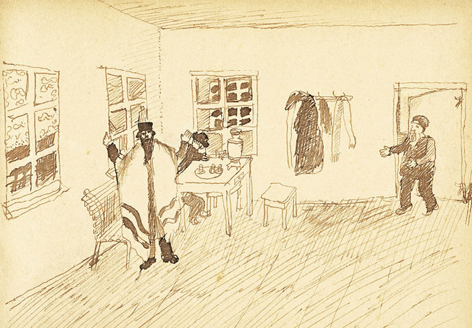 Марк Шагал. У дедушки. Лист из «Большого альбома». 1911–1912