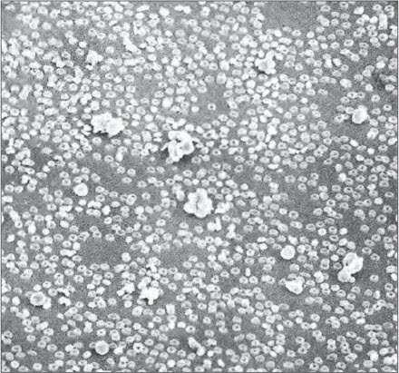 Макрофотография клеток крови человека. Клетки, напоминающие пончики, – это красные кровяные тельца (эритроциты), переносящие кислород. Более крупные комки – белые кровяные тельца, которые уничтожают чужеродные микроорганизмы.