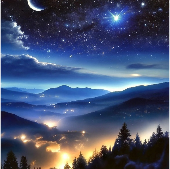 Погас закат. Ночь дивная пришла,Двурогий месяц в небе показался,Земля сиянием пленительным озарена,Таинственный туман образовался.От звёзд мерцания прекрасен небосвод,Их мириады в небе чёрном светят,Вальс звёздный, как мечта, к себе влечёт,Ведь этот танец невозможно не заметить.Где в небесах разлился Млечный путь,Под музыку волшебную Вселенной,Мерцают звёзды, не дают уснуть,Вальс звёздный необыкновенный.Изяществом и волшебством заворожил,Очаровал игрою света колдовскою,Он будто в сказку зрителя переносил,Давая насладиться звёздной тишиною.