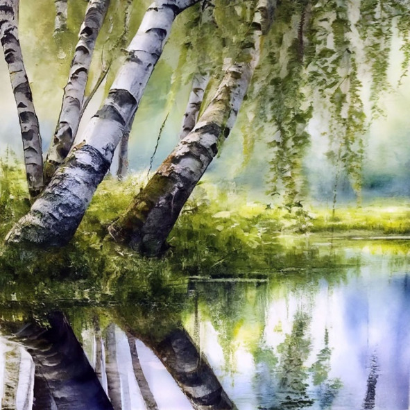 Стройная в лёгком платье берёзаНад прудом склонилась низко.Отражением любуясь, роняет слёзы,Наклоняясь к поверхности близко.Ветер крону игриво колышет,Шепчет сказки берёзе чудной,Устремляясь к макушке выше,Перебирая листья её изумрудные.Опечалена чем, ты берёза?Какие сказки поведал ветер?С ним бывают, порой, курьёзы,Знает он обо всём на свете.От печали излечит сердце,Заберёт все твои тревоги.Приоткроет волшебную дверцу,Знай, что счастье уже на пороге.