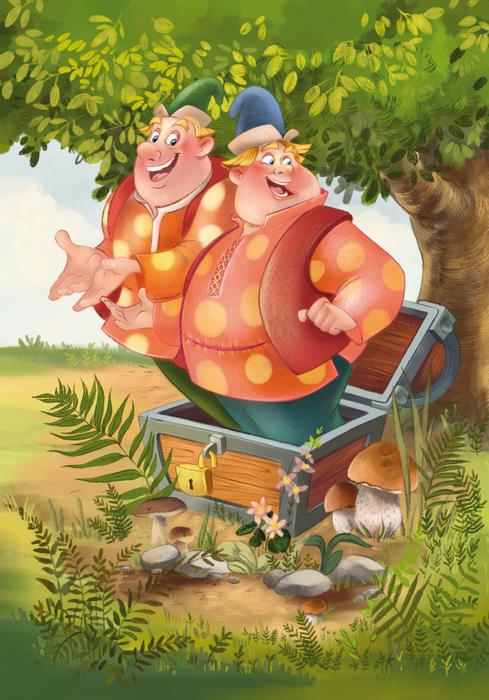 Невдалеке они увидели какой-то сундук. Друзья подошли к нему и только прикоснулись к крышке, как сундук открылся, и из него выскочили…