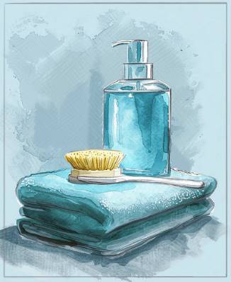 Щетинка дружила с двумя неразлучными друзьями: мылом по имени Пузырек и полотенцем Пушистиком. Они все вместе обитали в большой королевской ванной комнате.