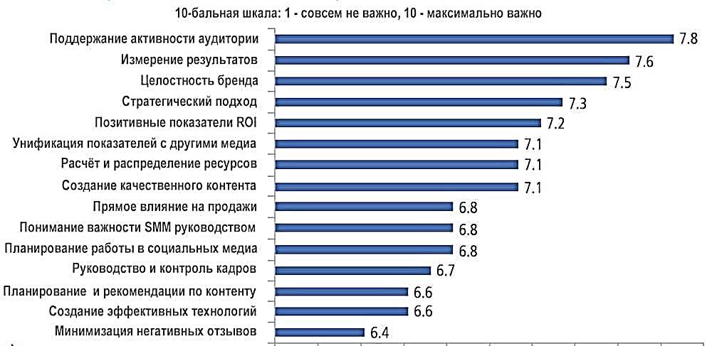 Маркетологи известных брендов оценили важность своих задач и проблем в социальных медиа по 10-бальной шкале (рисунок 1.1).