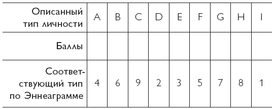 3. Напишите тип, соответствующий наивысшему значению ваших баллов (это будет тип 4, 6, 9, 2, 3, 5, 7, 8 или 1). ______________