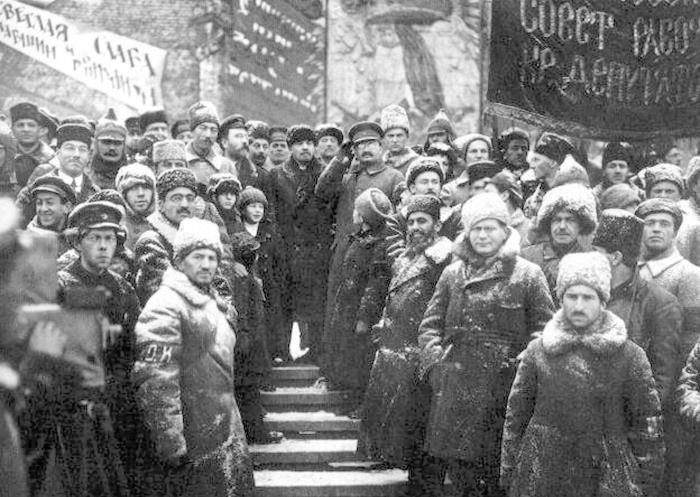 В.И. Ленин и Л.Д. Троцкий с участниками революции