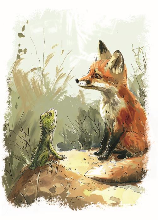 – Бедная ящерица! А давай к ней сбегаем, может, ей помощь какая нужна? – предложил добрый лисёнок.