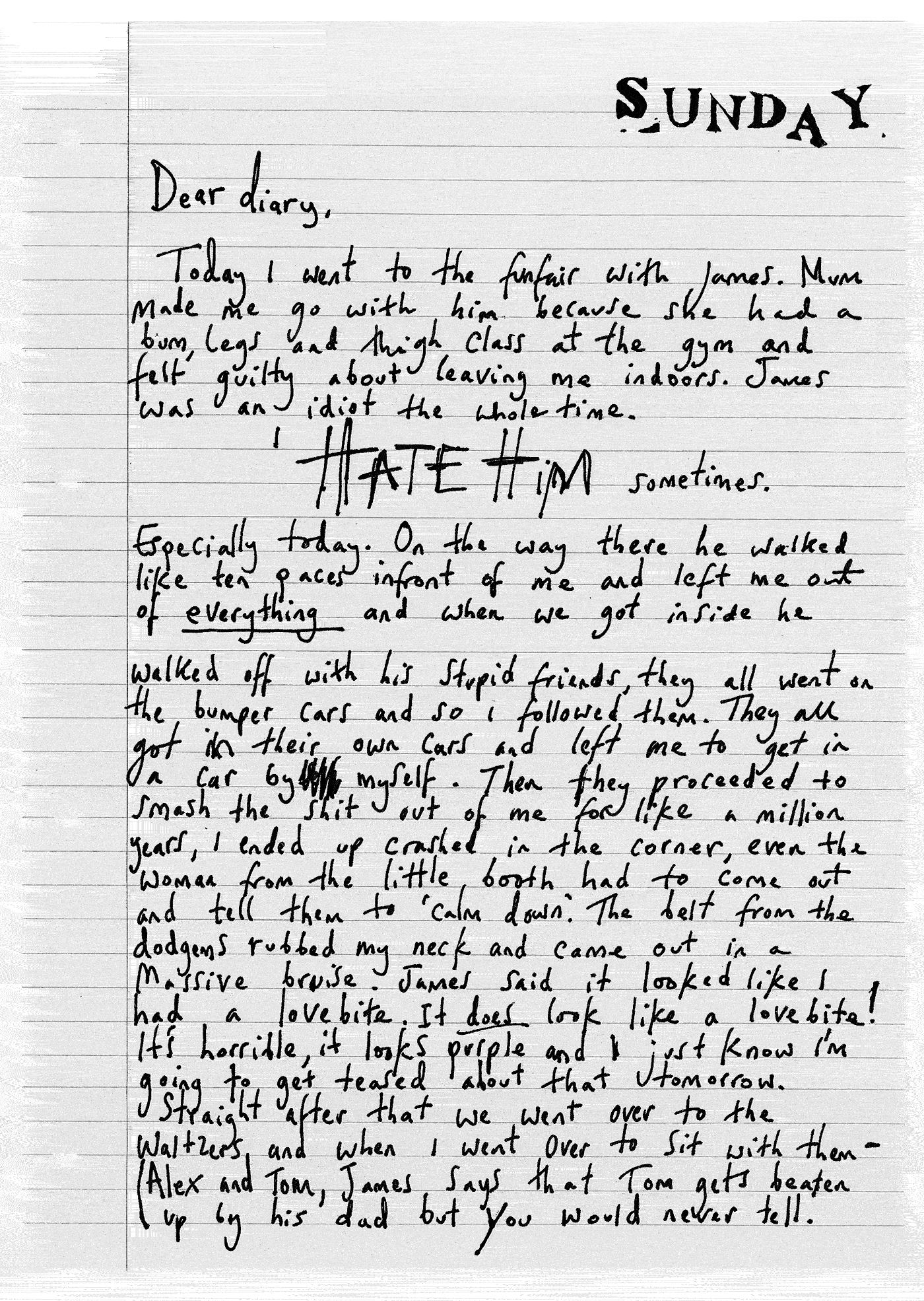 ‘Rebecca and Leilah reckon you haven’t got any pubes. I’m saying you do. You do right? If you do could you pull out a few so I can show them to shut them up?’ snickered Florence. Abigail picked at the edges of her diary.