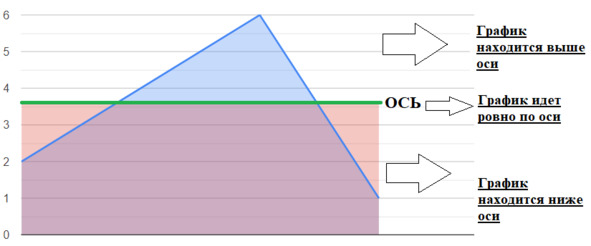 Негативная зона – это та зона, где линия графика опускается ниже нуля. От —1 до —9.
