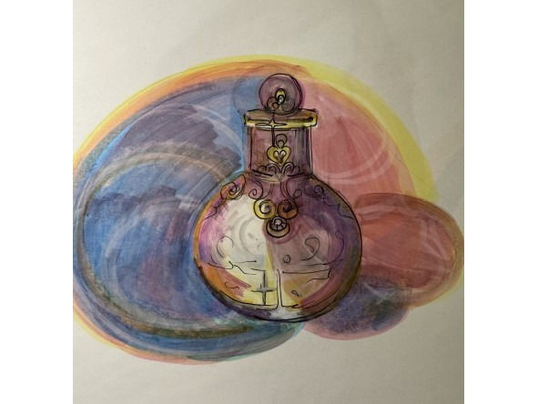 Достал волшебник красивый фиолетовый флакон с золотыми узорами и протянул Василисе. Поблагодарила Василиса доброго Волшебника. Обняла его на прощание. Продудела в дудочку три раза, и отвёз её дракон обратно домой.