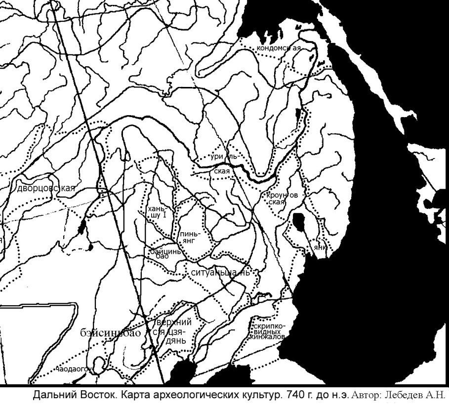Рис.2. Карта археологических культур Дальнего Востока 740 г. до н.э.