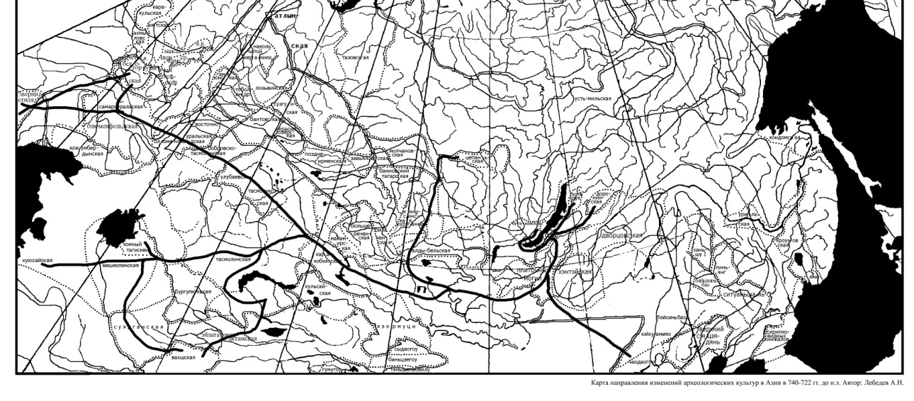 В качестве еще одного интересного момента в таких событиях следует назвать изменение археологических культур в степной полосе Евразии (см. Рис 8).