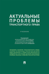 Учебник представляет собой первую книгу, которая содержит не только систематическое изложение знаний в области транспортного права, но и ориентирована на формирование способности магистрантов квалифицированно проводить научные исследования в данной сфере, а также на приобретение навыков генерирования новых знаний. Законодательство приведено по состоянию на 1 декабря 2022 г. Подготовлен в соответствии с обязательными требованиями федерального государственного образовательного стандарта высшего образования и методическими требованиями, предъявляемыми к учебным изданиям, на основе новейших нормативных правовых актов.
