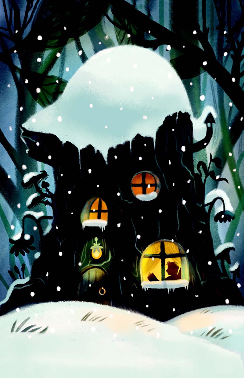 На заснеженной опушке леса в старом пне приютился домик, в котором жил топпит Дудли.
