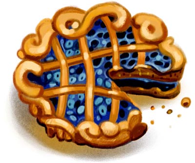 Тем временем гостья продолжала хозяйничать в его домике. Она перешла на кухню и поставила чайник на плиту, а затем стала неторопливо разворачивать свёрток, весело поглядывая на Дудли. И вот на свет появился великолепный пируш – черничный пирог с завитушками по краям.