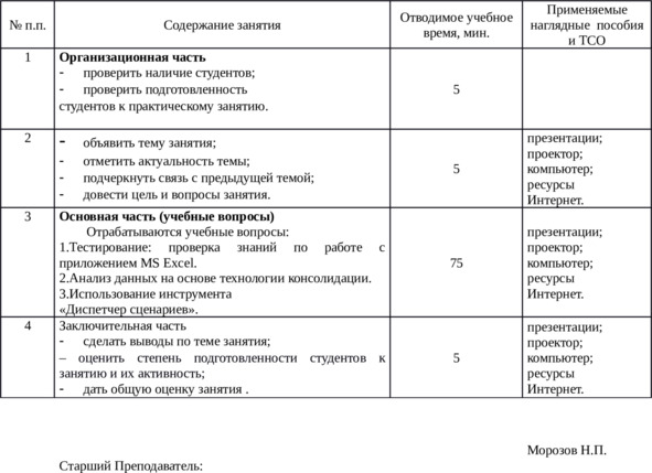 – сформировать представления о возможностях применения при компьютерном анализе данных процедур консолидации и инструмента «Диспетчер сценариев».