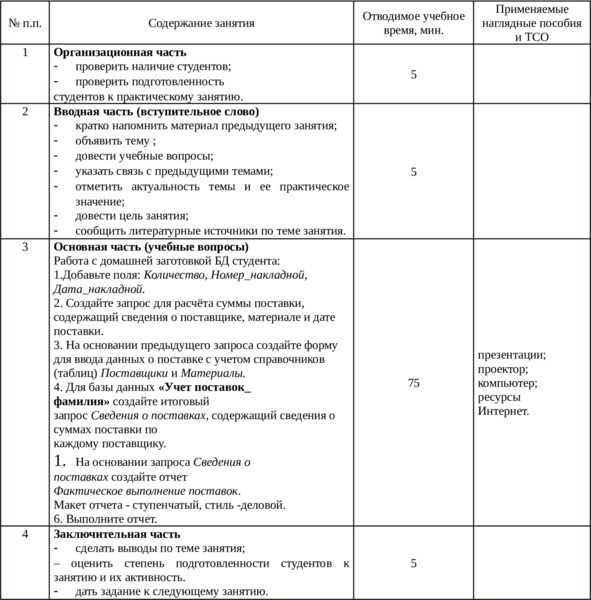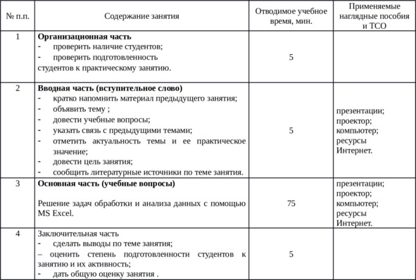 План практического занятия