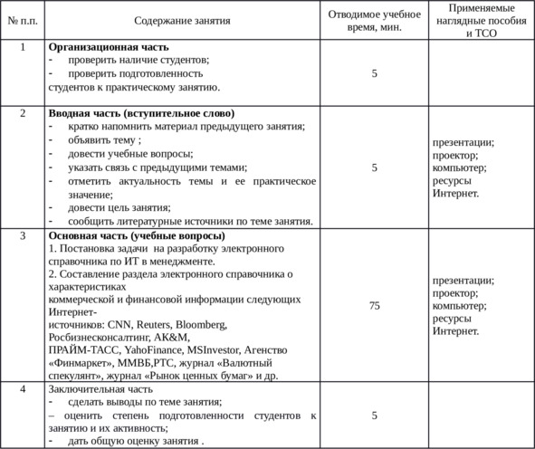 Планы лекций и практических занятий по «Информационным технологиям в менеджменте»