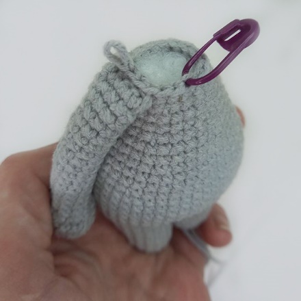 Начните набивать деталь и далее каждые 5-6 рядов добавляйте наполнитель. Ручки набиваем следующим образом: до середины – средней плотности, выше – совсем немного наполнителя. Так ручка меньше будет топорщится в сторону.