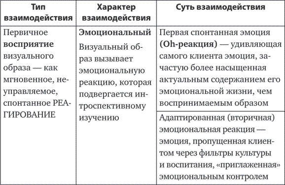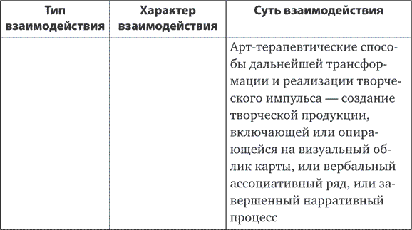 Таблица 1.1. Тип, характер и суть взаимодействий клиента с метафорической картой