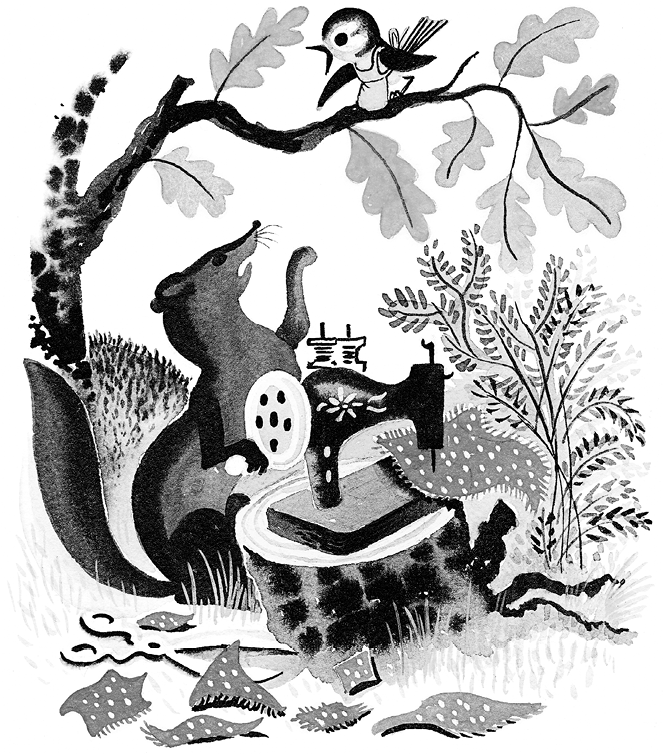 Стала терпеливая Синица из холстины фартук кроить. Тут прикинет, там смекнёт, сюда подвинет, туда подвернёт. Всё она сообразила. Всё высчитала, всё вычертила, потом за ножницы взялась. Хороший фартук получился. Ни одного лоскутка не пропало даром.