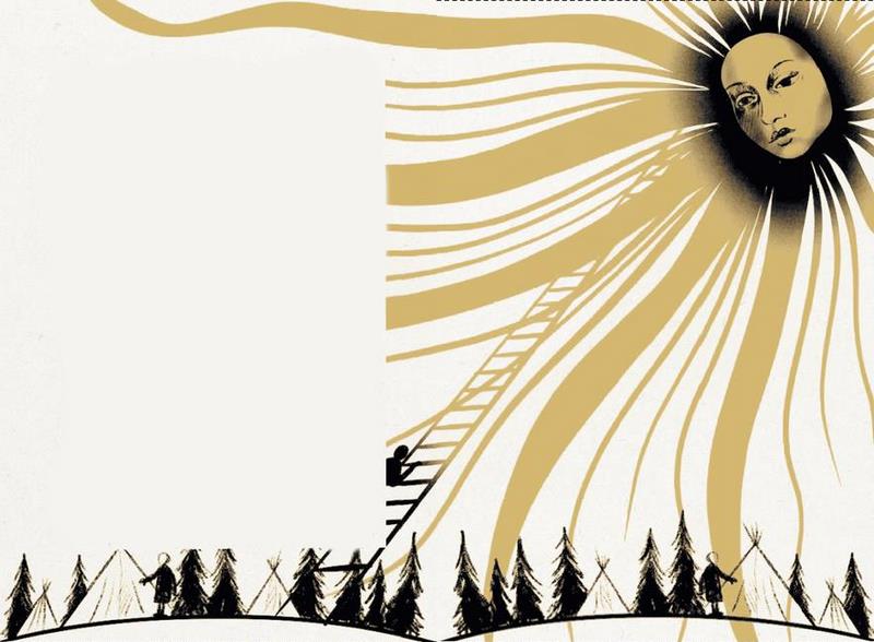 А на небе высоко-высоко жила женщина-Солнце. Скучно ей было – одна жила. Вот однажды видит она: ходит по земле человек, все рассматривает, на небо поглядывает. Женщина-Солнце подумала: «Какой красивый человек по земле ходит, на меня поглядывает. Нужно мне его сюда на небо достать. Но как его достать? Я высоко, а человек на земле, низко».